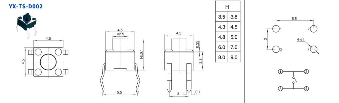 四腳輕觸開關引腳圖如下: