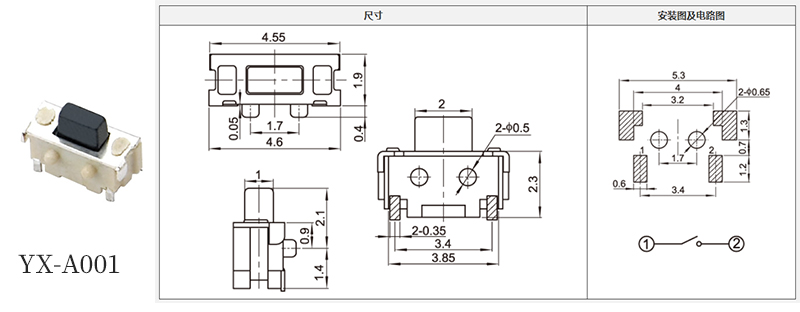 上一篇:YX-A002型號1.8*4.55輕觸開關