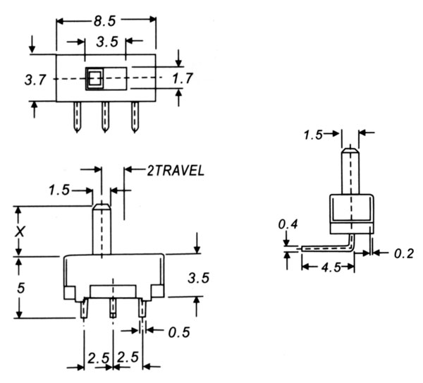 當前位置:撥動開關 >> 舊版產品 >> 豎柄撥動開關 >> 撥動開關SS-12D03