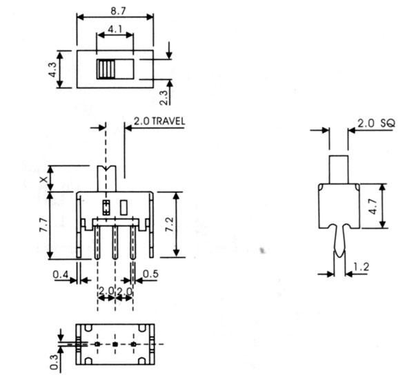 當前位置:撥動開關 >> 舊版產品 >> 豎柄撥動開關 >> 撥動開關SS-12D07